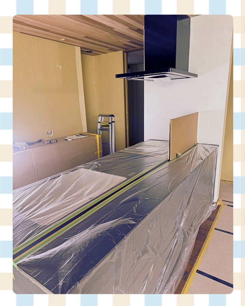 設置後はこのように汚れ、傷がつかないようにシートに被います。